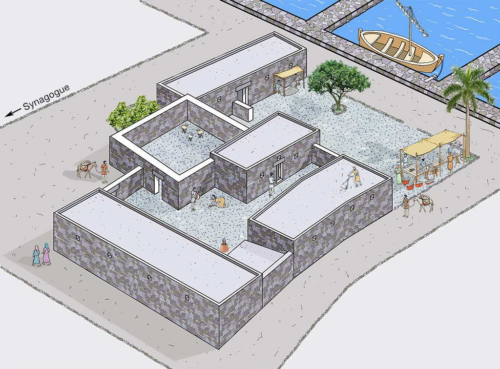 The average home would have been a single room dwelling around 200 square feet for an entire family. That’s about the size of a small bedroom in a modern home. I’ve been to Capernaum myself and seen these homes. Jesus’ house was something completely different than what was in the rest of Capernaum. He had a complex. The large dwelling consisted of ten rooms built around three courtyards. In the north courtyard most of the domestic activities took place. Animals were kept in the courtyard to the east, and the southern courtyard, which was next to the harbour, was presumably used for fishing activities such as mending nets, selling fish and other activities. Later in the century, the east courtyard was used as a place for religious gatherings.